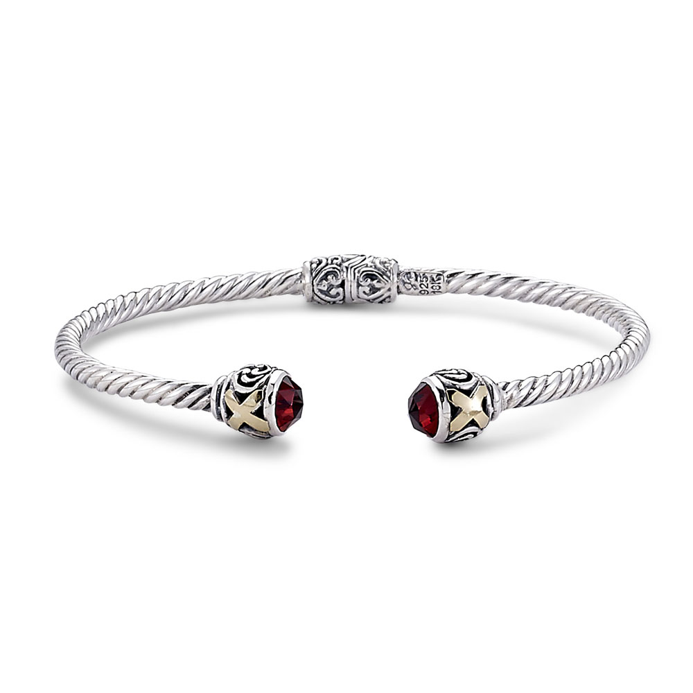 Sterling Silver and 18K 3Mm X Design Bangle With Garnet