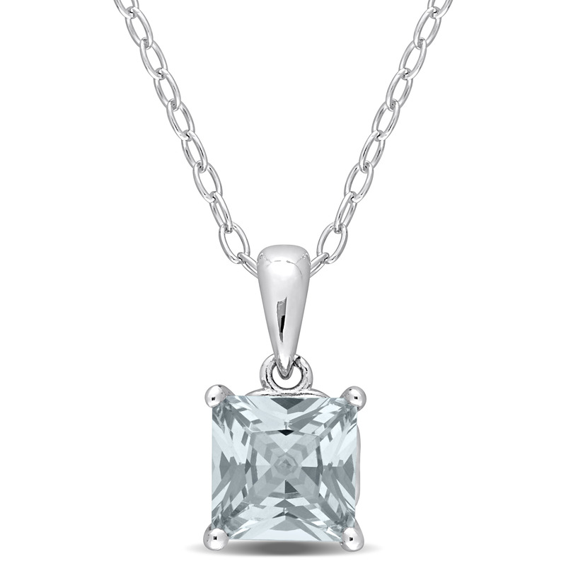 Every woman deserves some pampering and nothing can be better than this elegant Created Spinel Solitaire Pendant with Chain. Crafted in luminous sterling silver, this splendid pendant features a princess-cut, 4 prong-set created spinel gemstone (6x6mm) with heart design details on the sides. Polished to a brilliant shine, this ravishing pendant is suspended on an 18-inch round cable chain secured with a spring ring clasp. A timeless accessory that you will always treasure.