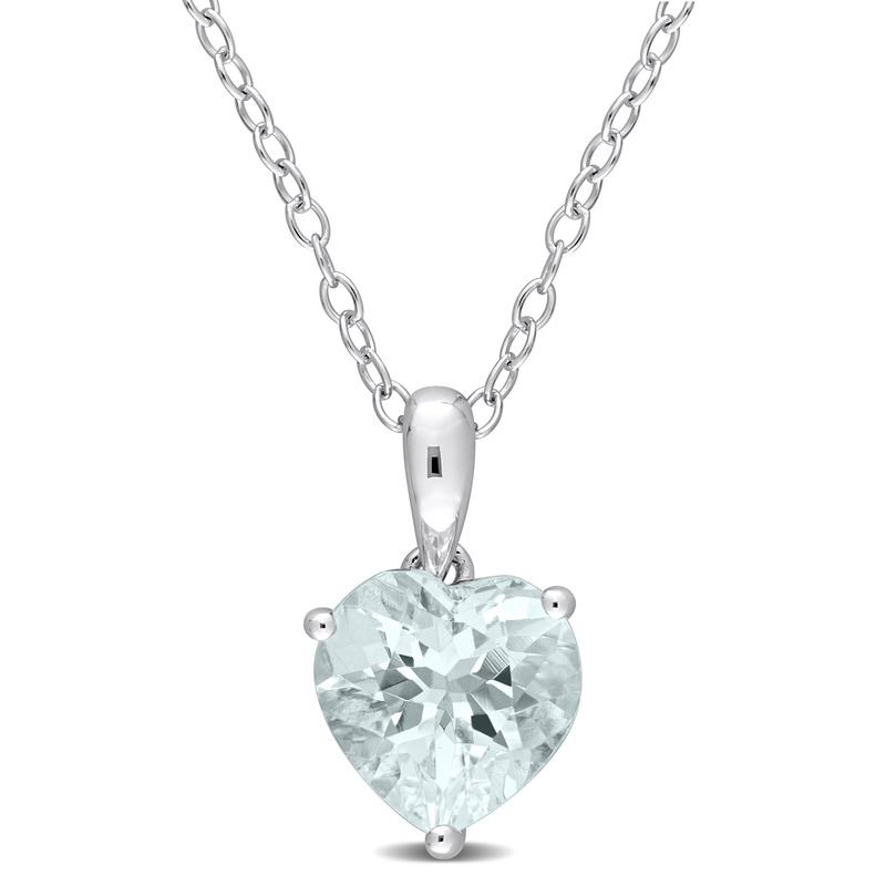 The beginning of forever calls for a ravishing accessory and what can be better than this Aquamarine Solitaire Pendant with Chain. Crafted in luminous sterling silver, this splendid pendant features a heart-cut, 3 prong-set aquamarine gemstone (8x8mm) with heart design details on the sides. Polished to a brilliant shine, this exquisite pendant is suspended on an 18-inch round cable chain secured with a spring ring clasp. An elegant accessory that will be a symbol of your unconditional commitment.