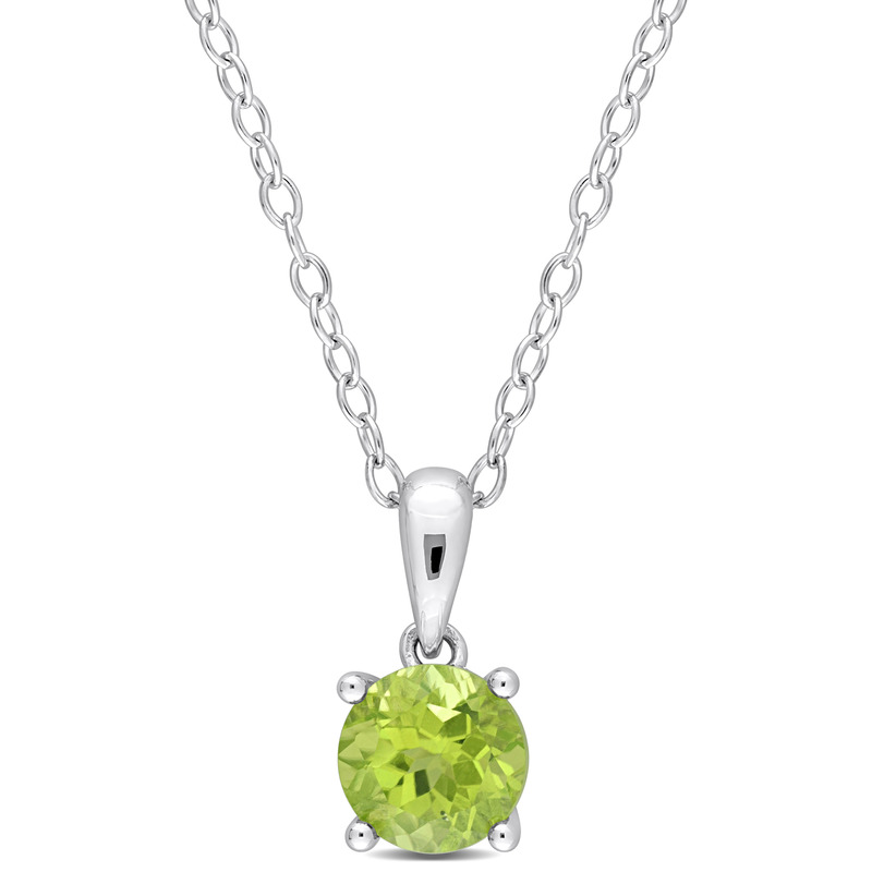 Make her heart flutter with this Peridot Solitaire Pendant with Chain. Crafted in shimmering sterling silver, it features a round-cut, 4 prong-set peridot gemstone (6x6mm) studded in a classic heart detailed, basket setting. Enhanced with a high polish finish, this pendant is suspended on an 18-inch round cable chain and secures with a spring ring clasp. Make all her dreams come true with this gorgeous solitaire pendant with chain.