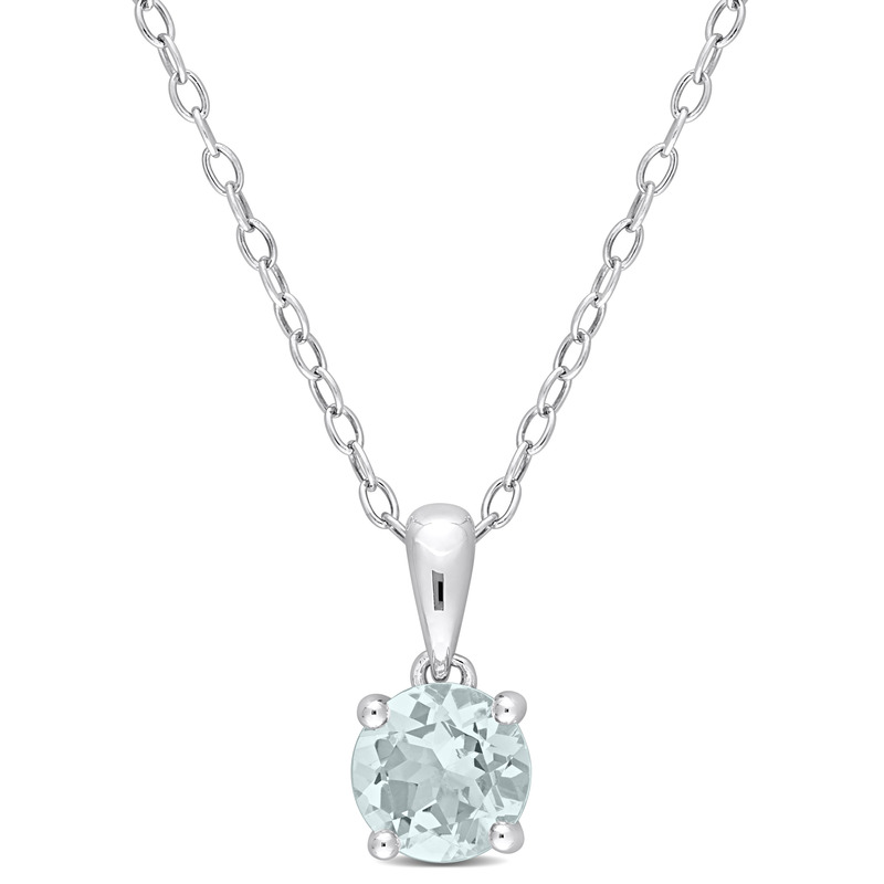 Make a splash with this gorgeous Aquamarine Solitaire Pendant with Chain. Crafted in lustrous sterling silver, it features a round-cut, 4 prong-set aquamarine gemstone (6x6mm) embellished in a heart detail basket setting. Polished to a brilliant shine, this lovely pendant is suspended on an 18-inch round cable chain and secures with a spring ring clasp. This radiant pendant is the perfect addition to any jewelry collection. Pair this precious pendant with chain with any ensemble for a stunning look.