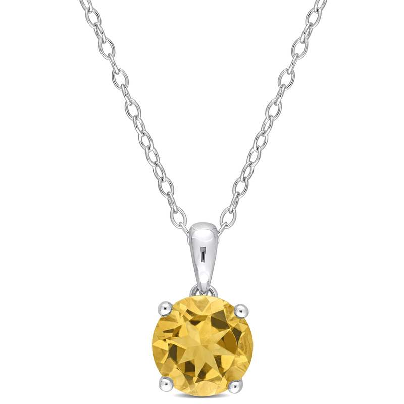 Show off your style and class with this Citrine Pendant with Chain. Set in glittering sterling silver, it features a round-cut, 4 prong-set citrine gemstone (8x8mm) embellished in a heart detailed, classic basket setting. Enhanced with a high polish finish, this solitaire pendant is suspended on an 18-inch chain and secures with a spring ring clasp. Highlight your neckline with this classic solitaire pendant with chain.