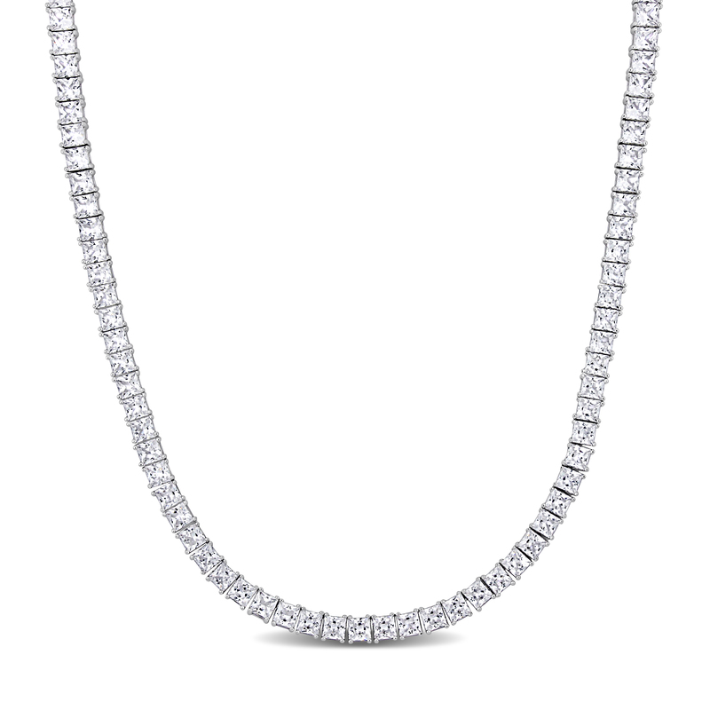 The 44 CT TGW 4mm Square Created White Sapphire Necklace with Box Clasp, a romantic and sophisticated piece that exudes timeless elegance and refined style. This exceptional necklace is expertly crafted in sterling silver, creating a classic and versatile accessory for any gentleman. Showcasing a stunning array of 4mm square created white sapphires, this necklace boasts a total gem weight of 44 carats. The dazzling white sapphires radiate a luminous brilliance, making it a perfect gemstone piece or fashion statement for the discerning gentleman in your life.