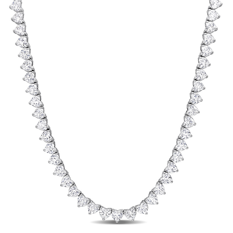 This pretty heart necklace is crafted in luminous sterling silver. This appealing necklace features 103 heart-cut, created white sapphire gemstones. Enhanced with a high polished finish, this exquisite 18-inch necklace will be a timeless addition to your jewelry collection. If you are looking for a gift for your loved ones or yourself, then this versatile necklace is the perfect choice.