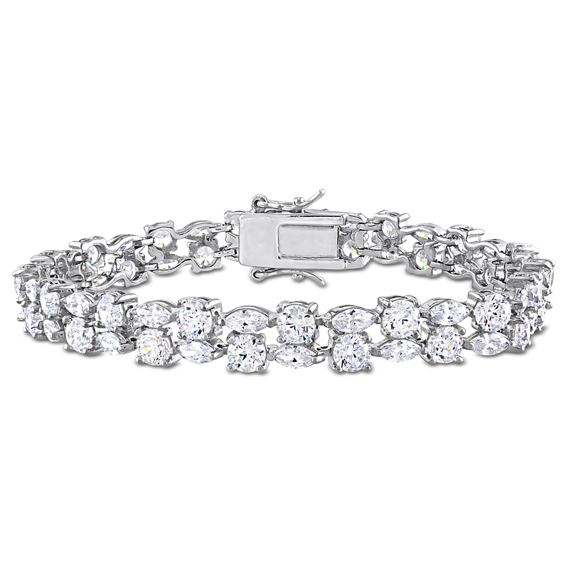 Introducing our stunning 17 5/8 Carat Total Gem Weight (CT TGW) Round and Marquise-Cut Created White Sapphire Tennis Bracelet in Sterling Silver, designed to add a touch of timeless elegance to any occasion. This exquisite piece of jewelry seamlessly combines classic charm with modern sophistication, making it a must-have addition to your collection.