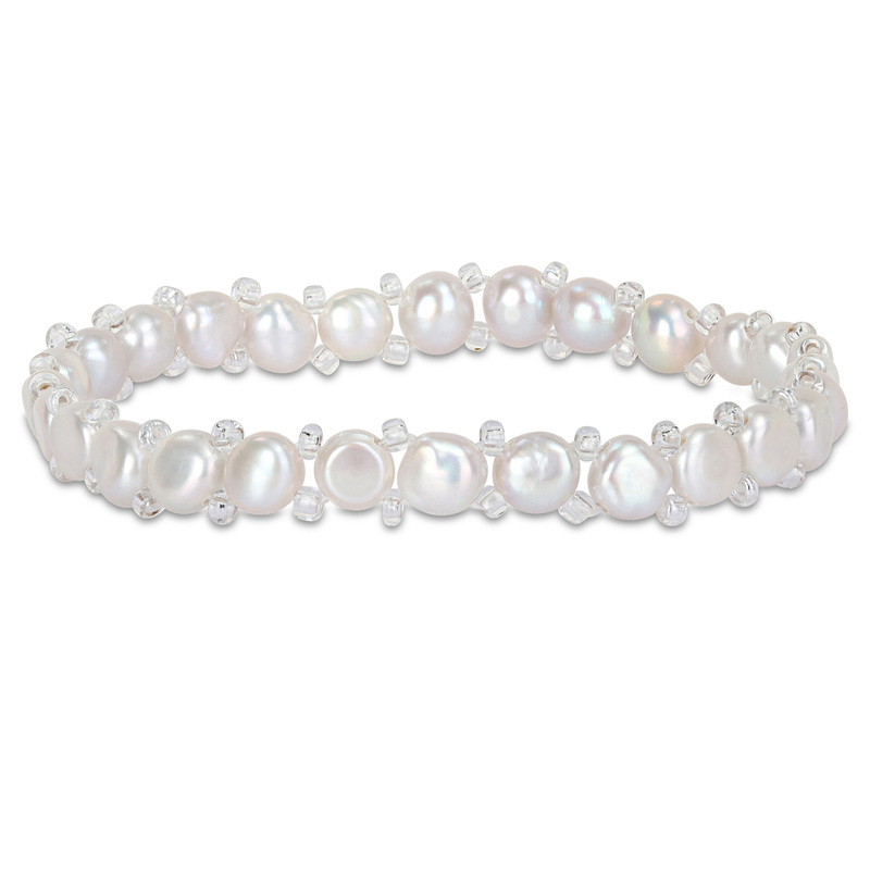 Step out with confidence with this Grey Pearl String Bracelet. A string of clear beads, this fashionable bracelet features 28 button-shaped white pearls (5-5.5mm) and one grey button-shaped pearl (5-5.5mm) strung on an elastic band. Enhanced with a high polish finish, this elegant bracelet makes a valuable addition to any jewelry collection. This classic bracelet measures 7-inches in length, is layerable and makes a worthy gift for your beloved.