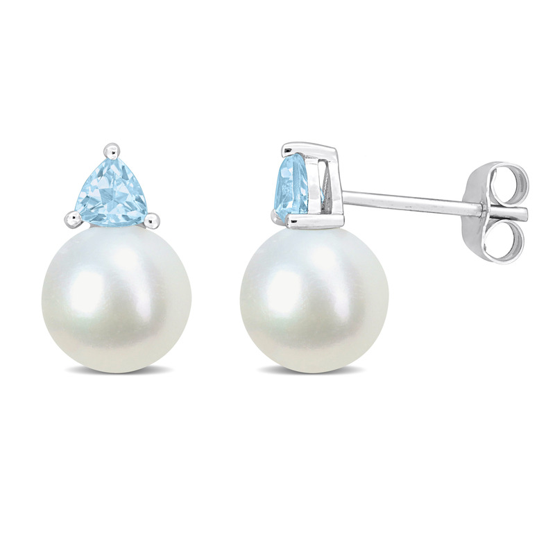 Discover sophistication with our 8-8.5mm Cultured Freshwater Pearl and 1/2ct TGW Sky Blue Topaz Stud Earrings, meticulously set in 10k White Gold. These stunning studs encapsulate elegance, merging the timeless allure of pearls with the captivating hue of Sky Blue Topaz, creating an exquisite blend of sophistication and charm. Elevate any ensemble with their graceful beauty, making them a must-have accessory that effortlessly enhances every occasion.