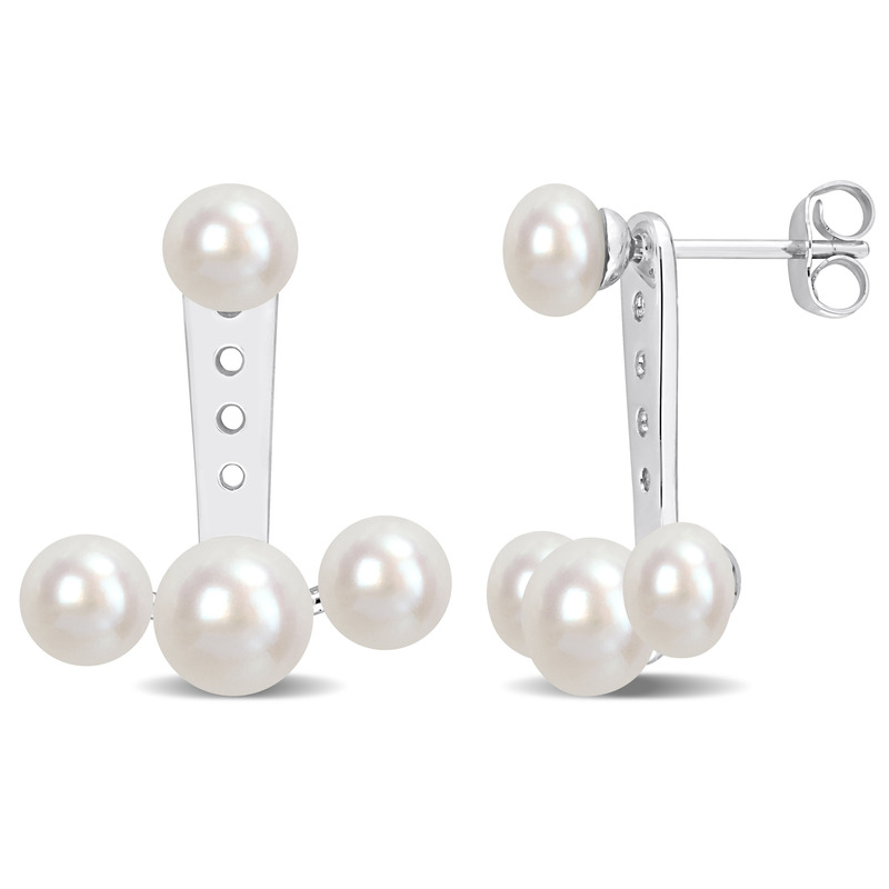 These pretty drop earrings are crafted in 10-karat white gold and feature eight button-shaped, freshwater cultured pearls. Polished to a brilliant shine, these glamorous earrings are perfect addition to any jewelry collection. Express your love and devotion with these gorgeous and unique earrings.