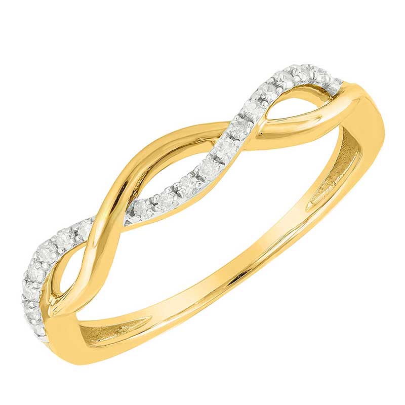 10K YELLOW GOLD 1/10 CARAT TOTAL WEIGHT DIAMOND 19 ROUND INFINITY TWIST STYLE RING