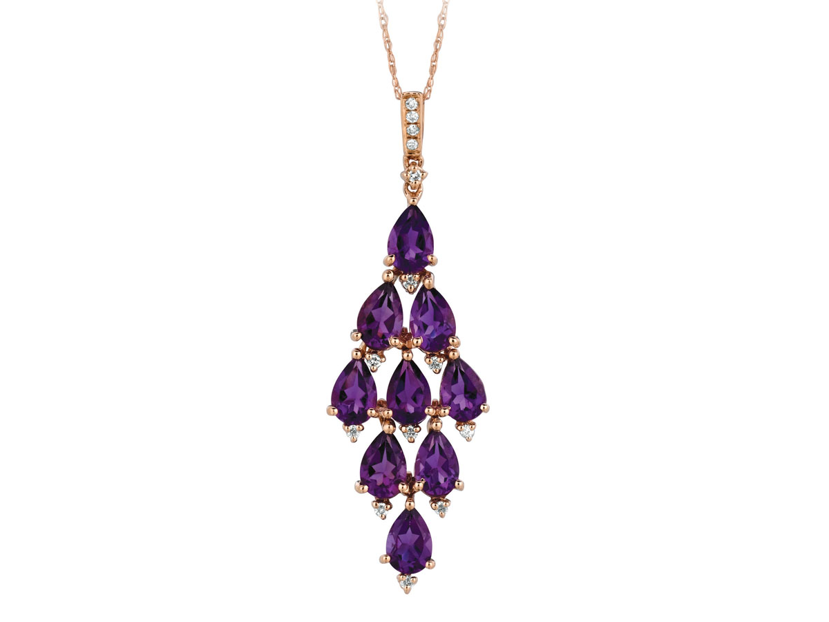 14K Rose Gold DIAMOND & AMETHYST PENDANT. Available by Special Order Only. Please allow 4-6 weeks for delivery.