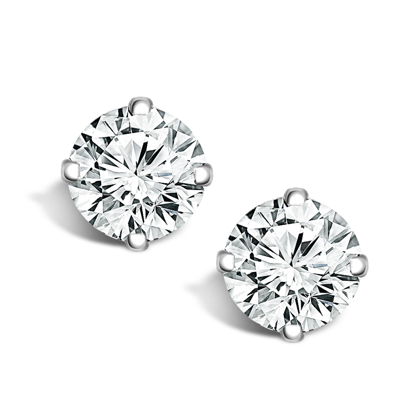 18W 1/3CTW Rd Diamond 4 Prong Post Stud Earrings