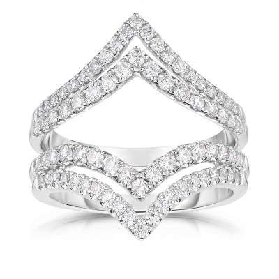 14K White Gold 1 Carat Total Weight Double ''V'' Row 17 Round Diamonds Each Side Of Inner V Row, 21 Round Dias Both Outter ''V'' Rows Slip-In Jacket Ring