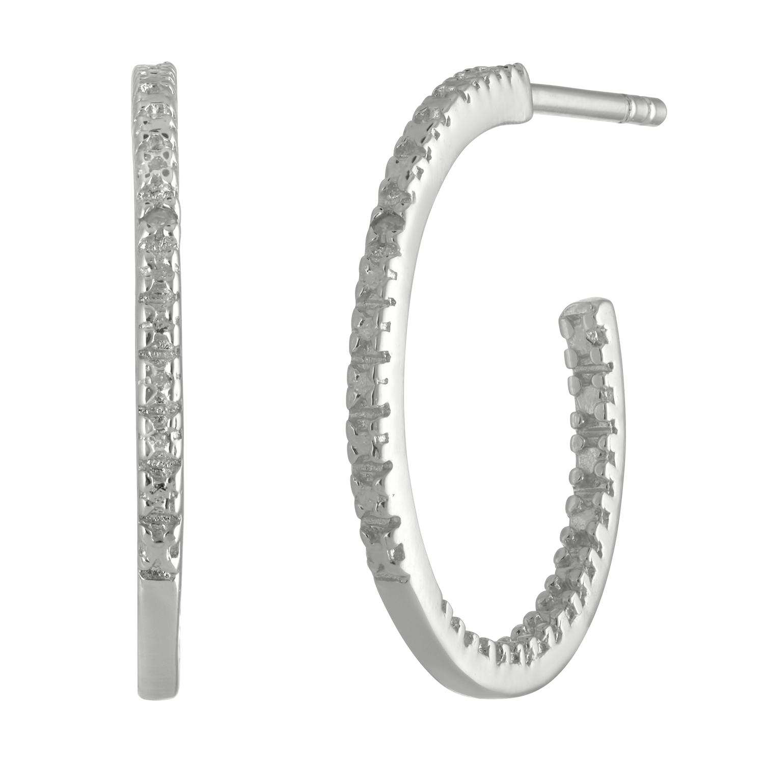 Sterling Silver .01 Carat Total Weight 18 Mm 1 Round Diamond Illusion Look In/Out 3/4 Round Post Hoop Earrings