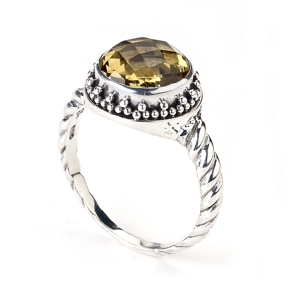 Sterling Silver Round 10Mm Citrine Ring W/ Twisted Shank