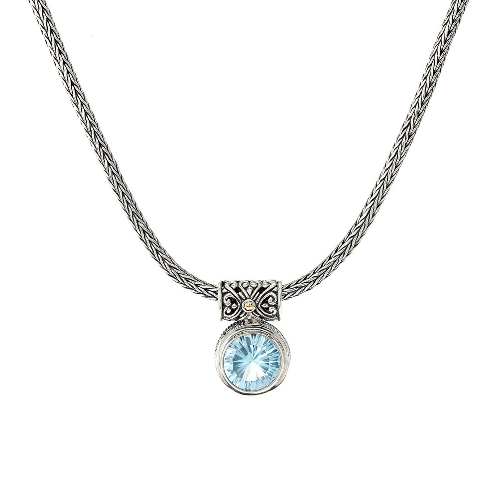 Sterling Silver and 18K Round Blue Topaz Necklace
